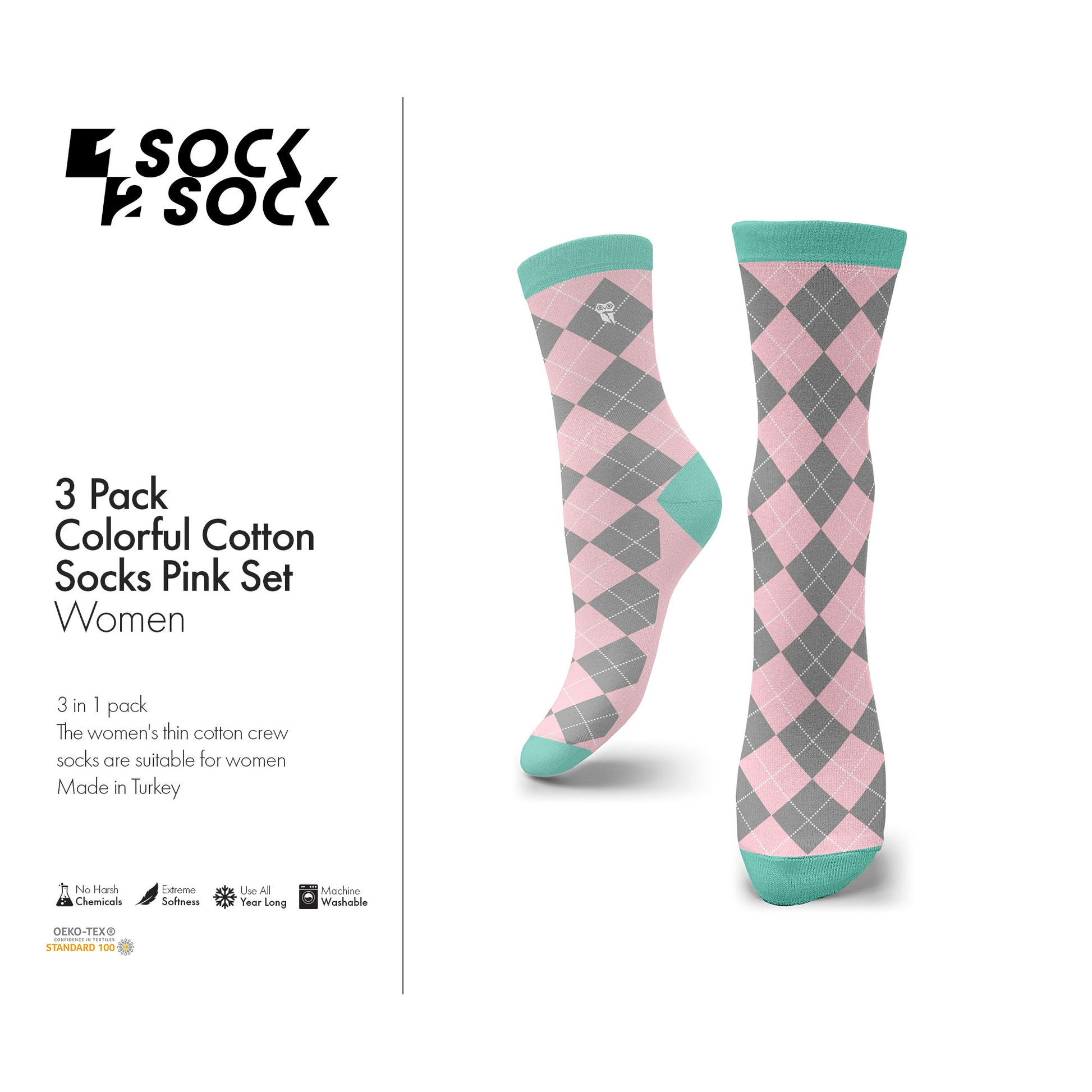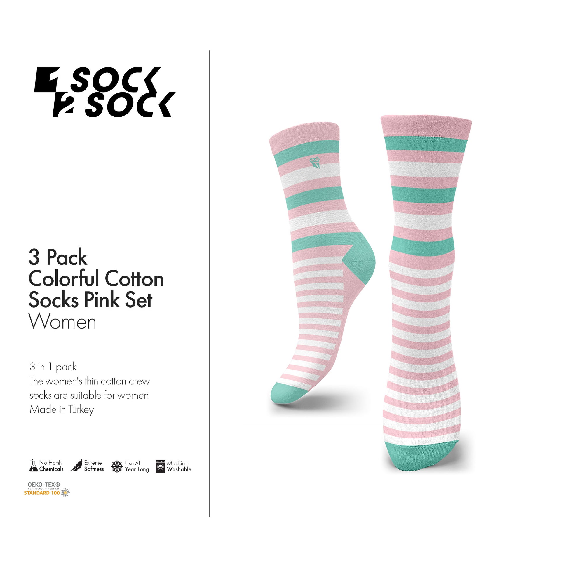 3 PACK COLORFUL COTTON SOCKS PINK SET
