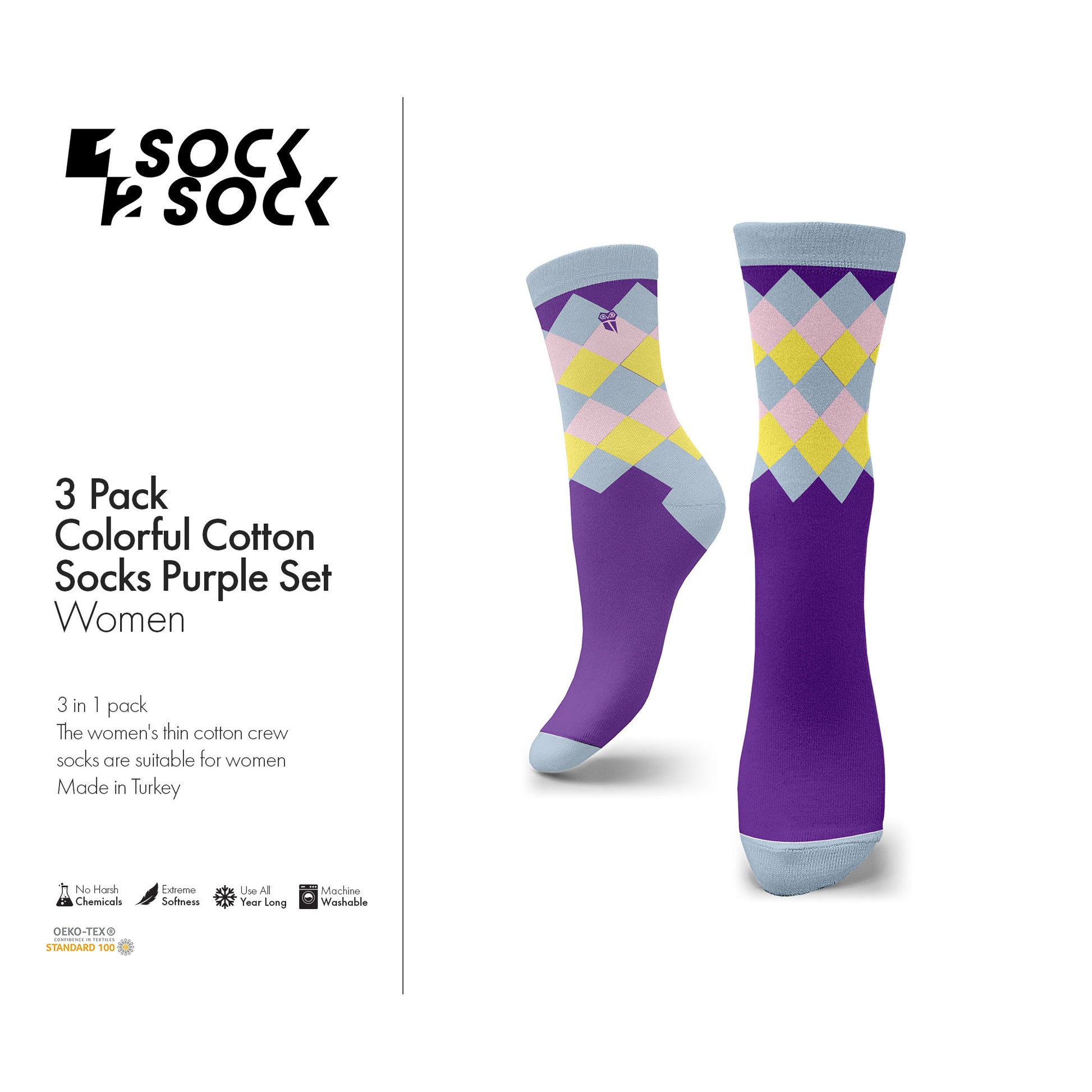 3 PACK COLORFUL COTTON SOCKS PURPLE SET