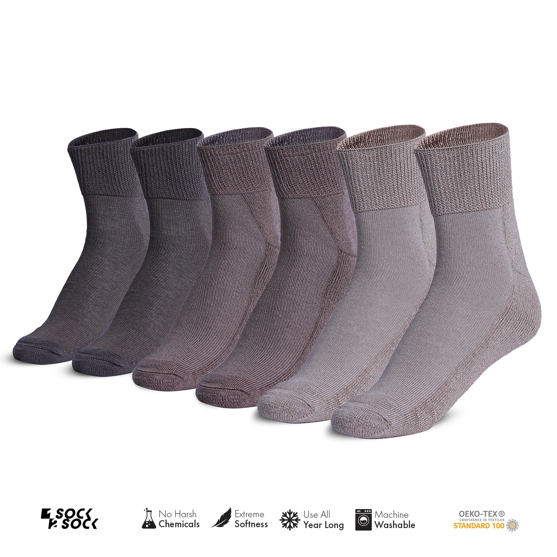 6 PACK DIABETIC QUARTER SOCKS FOR MEN AND WOMEN BROWN