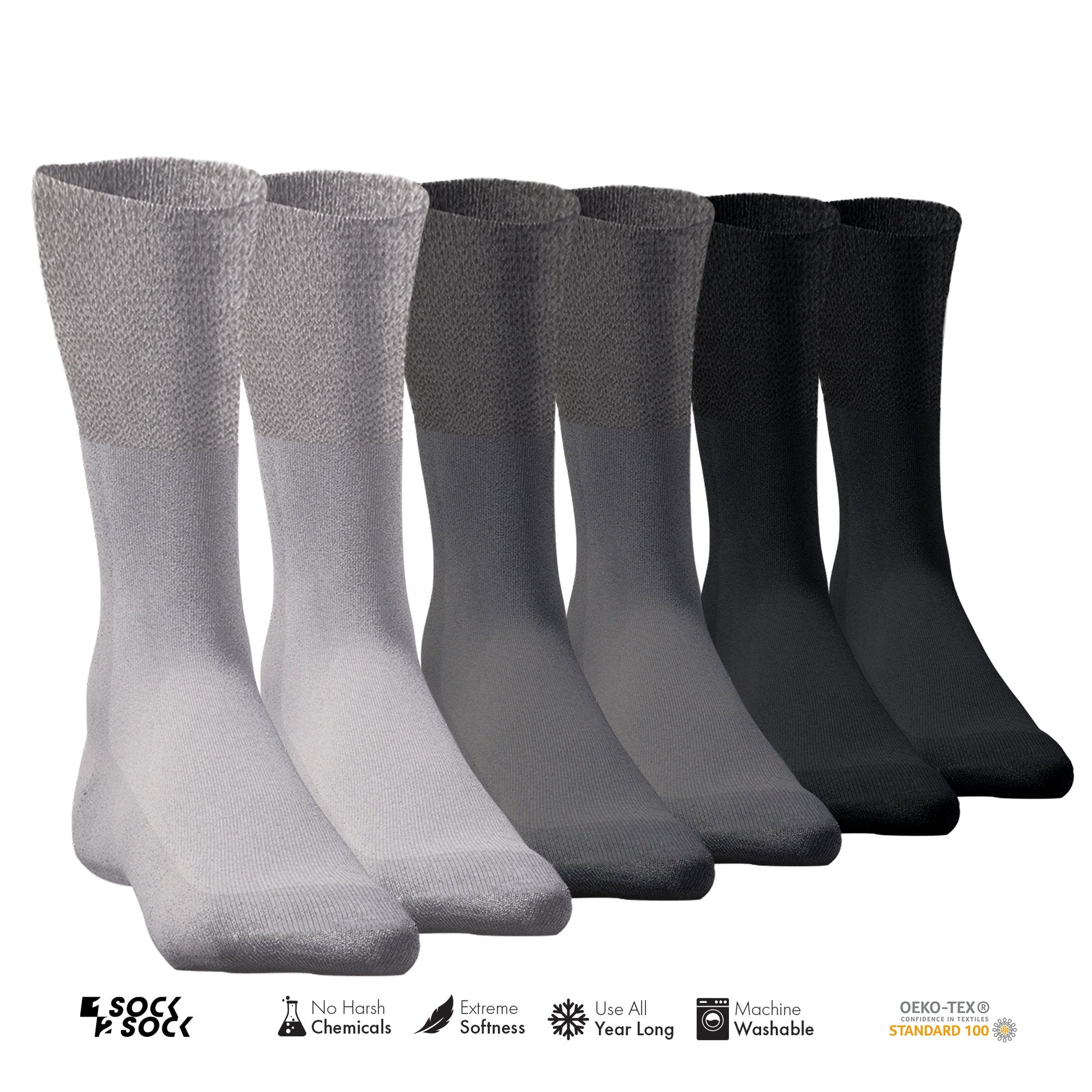 6 PACK DIABETIC SOCKS GREY