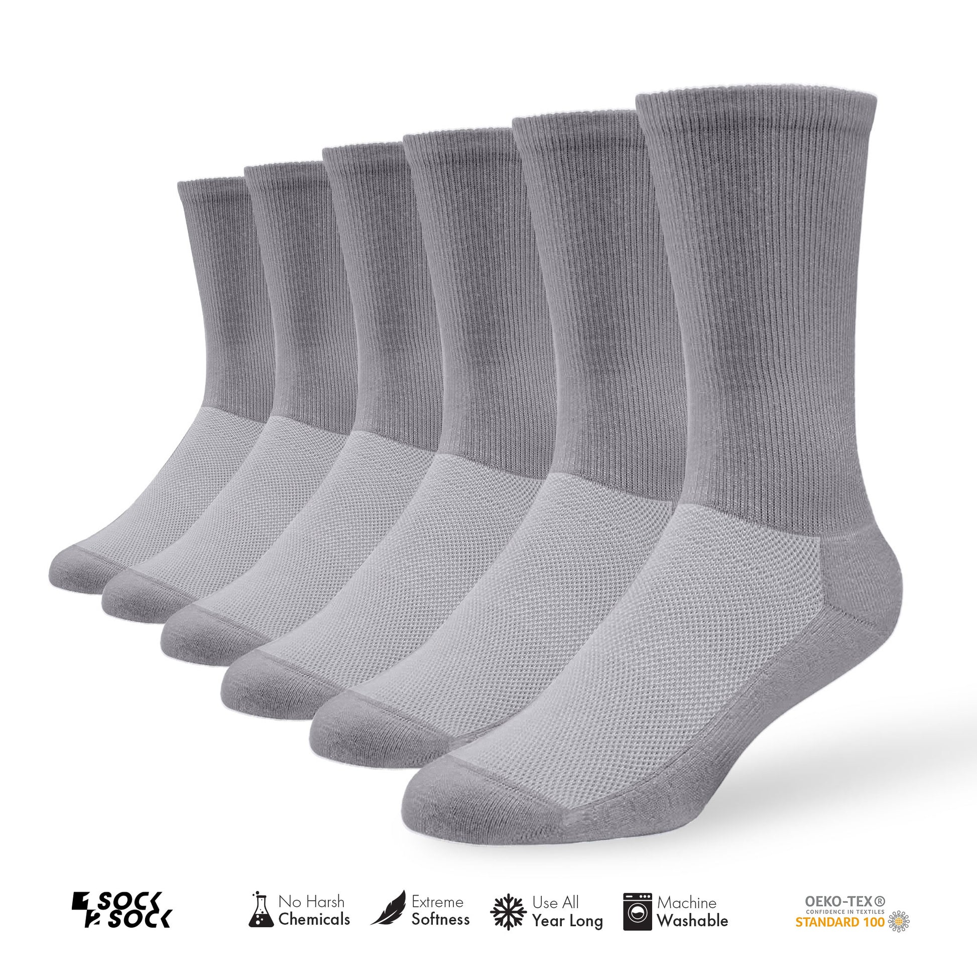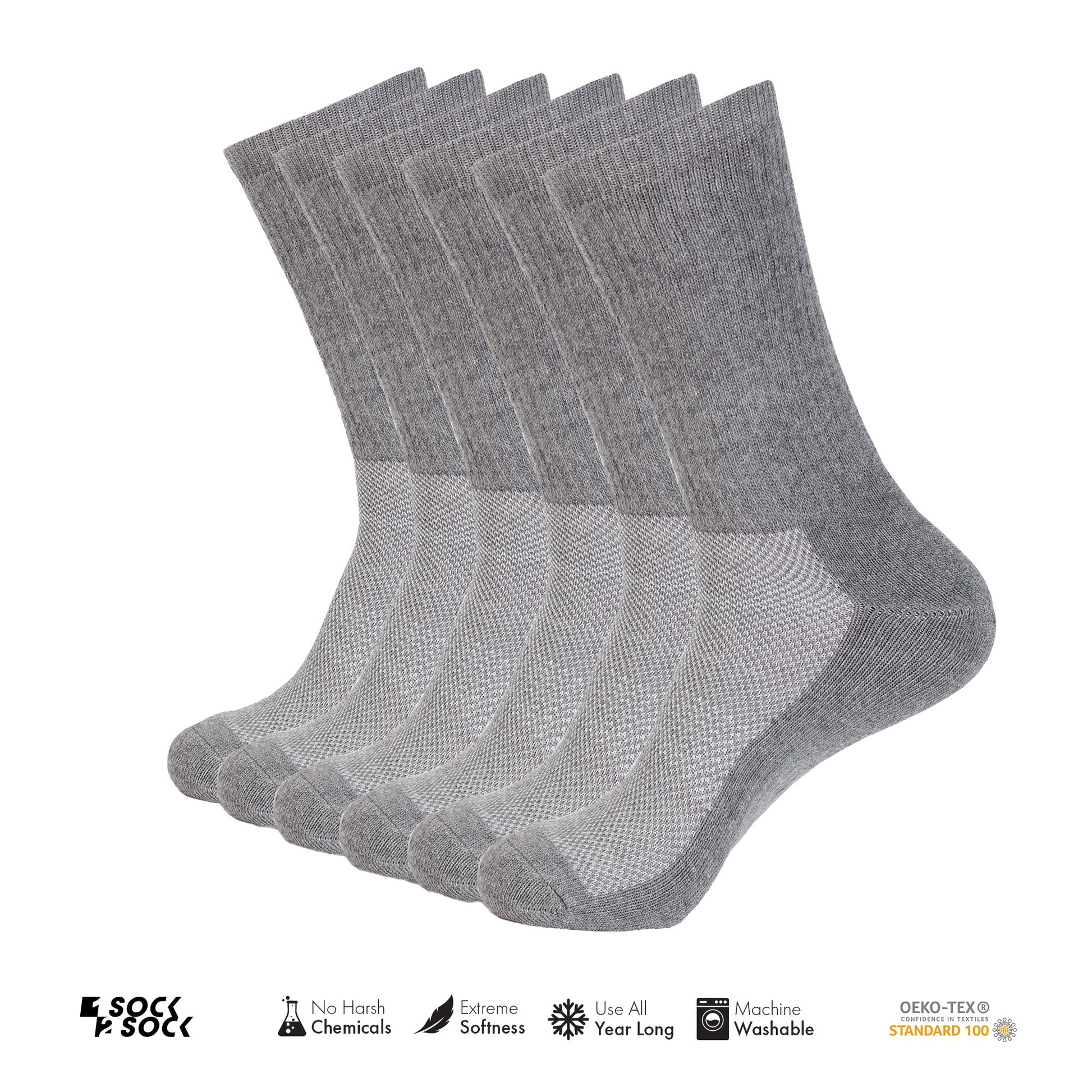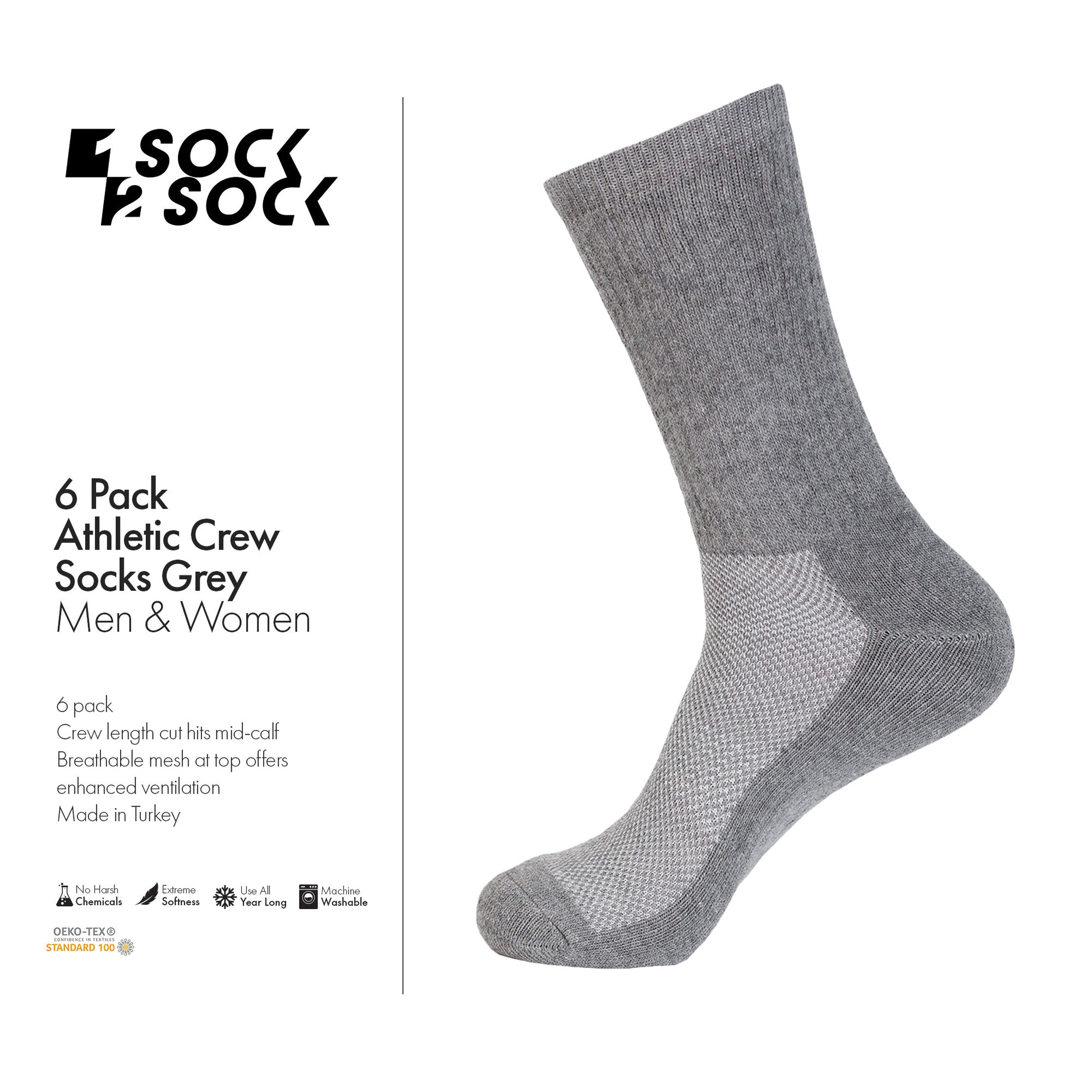 6 PACK ATHLETIC CREW SPORT SOCKS GREY